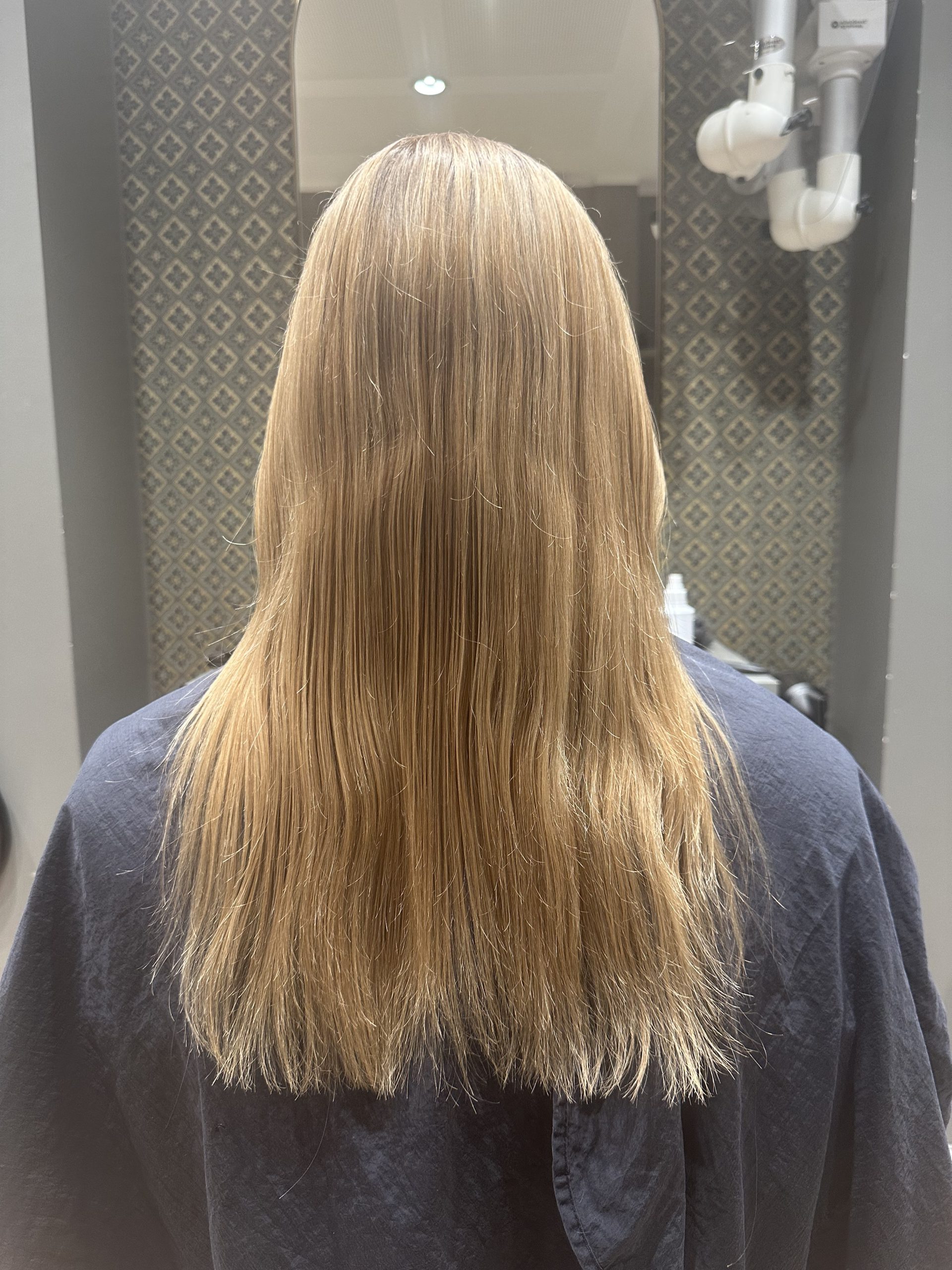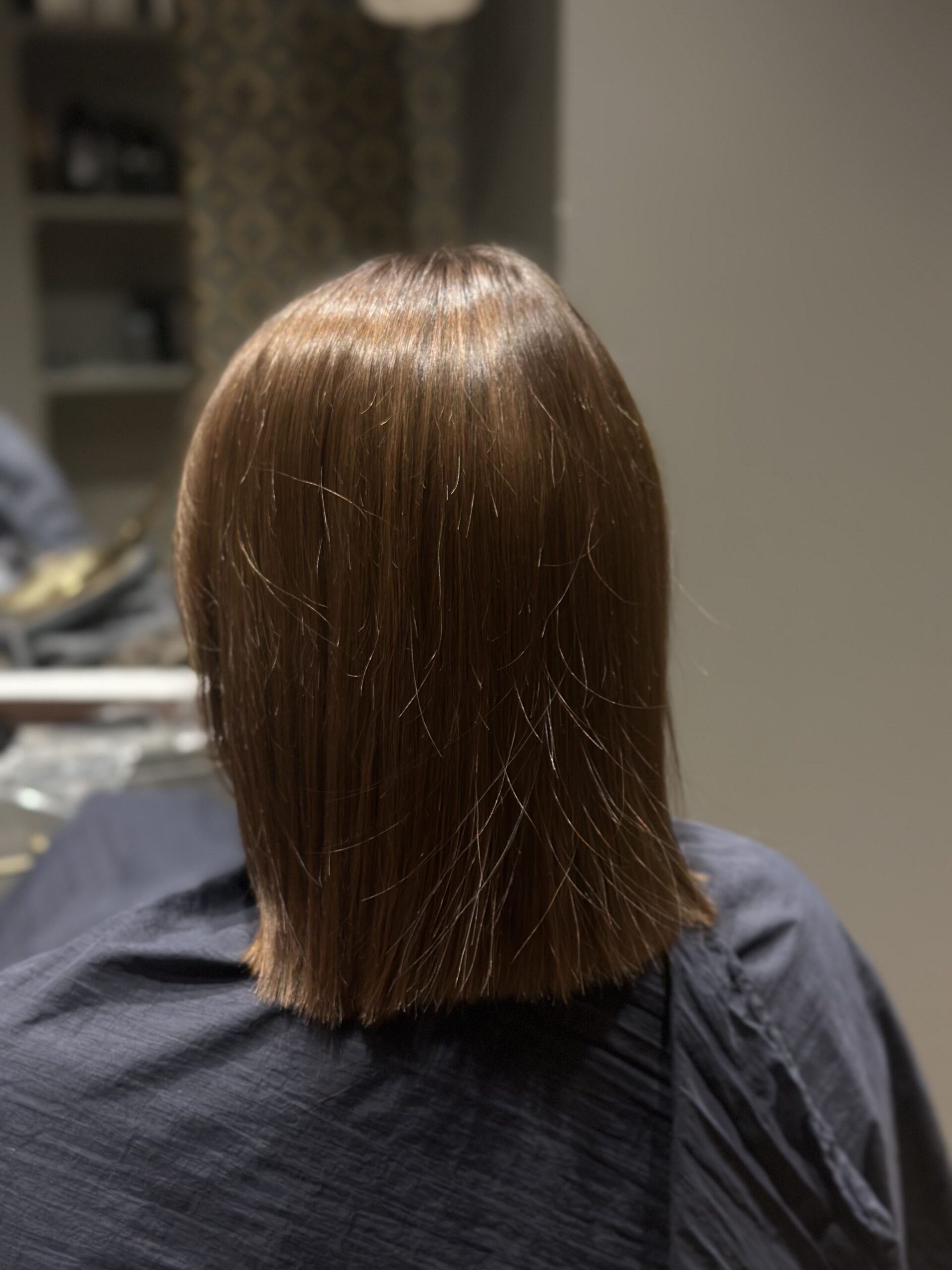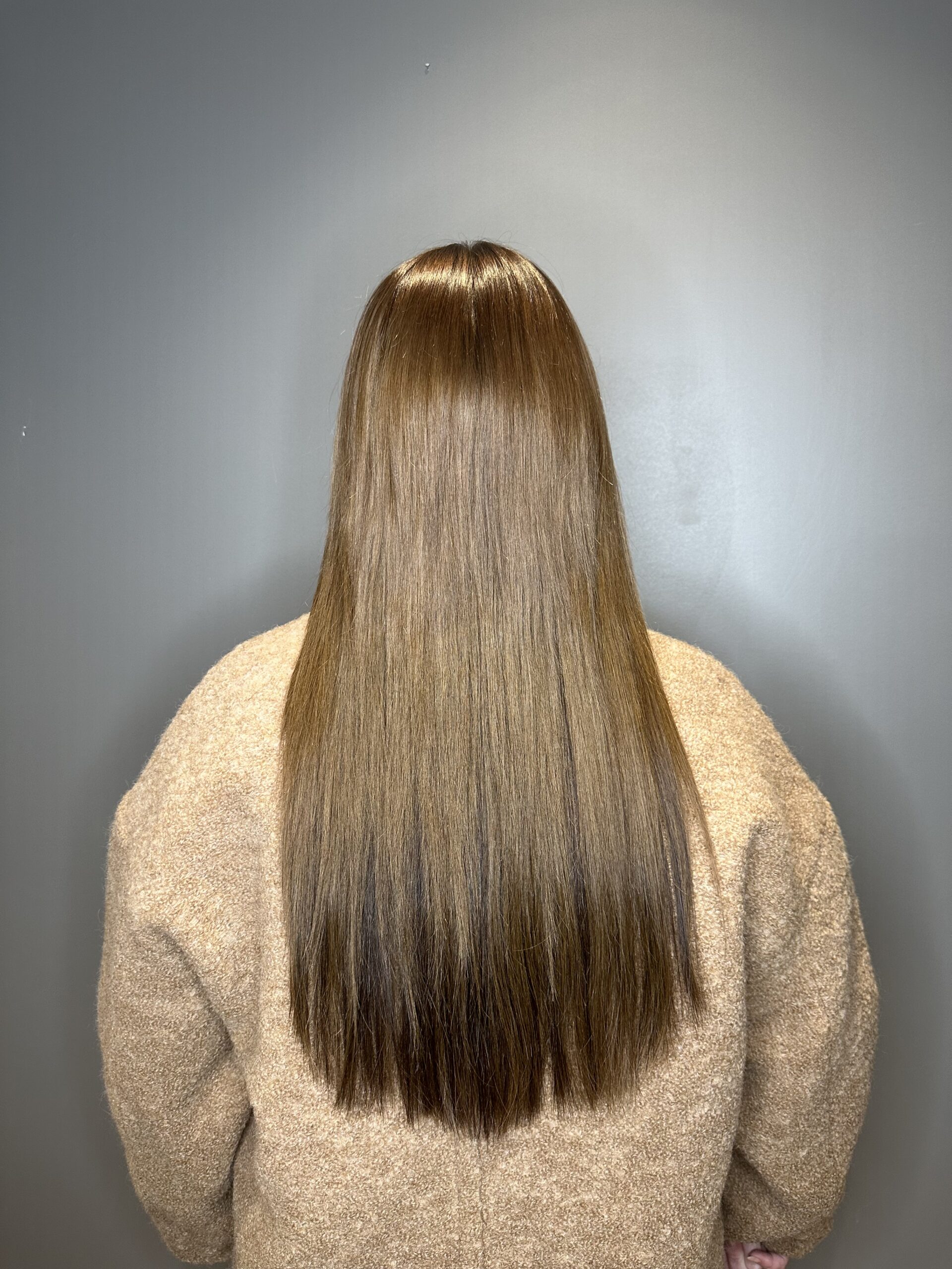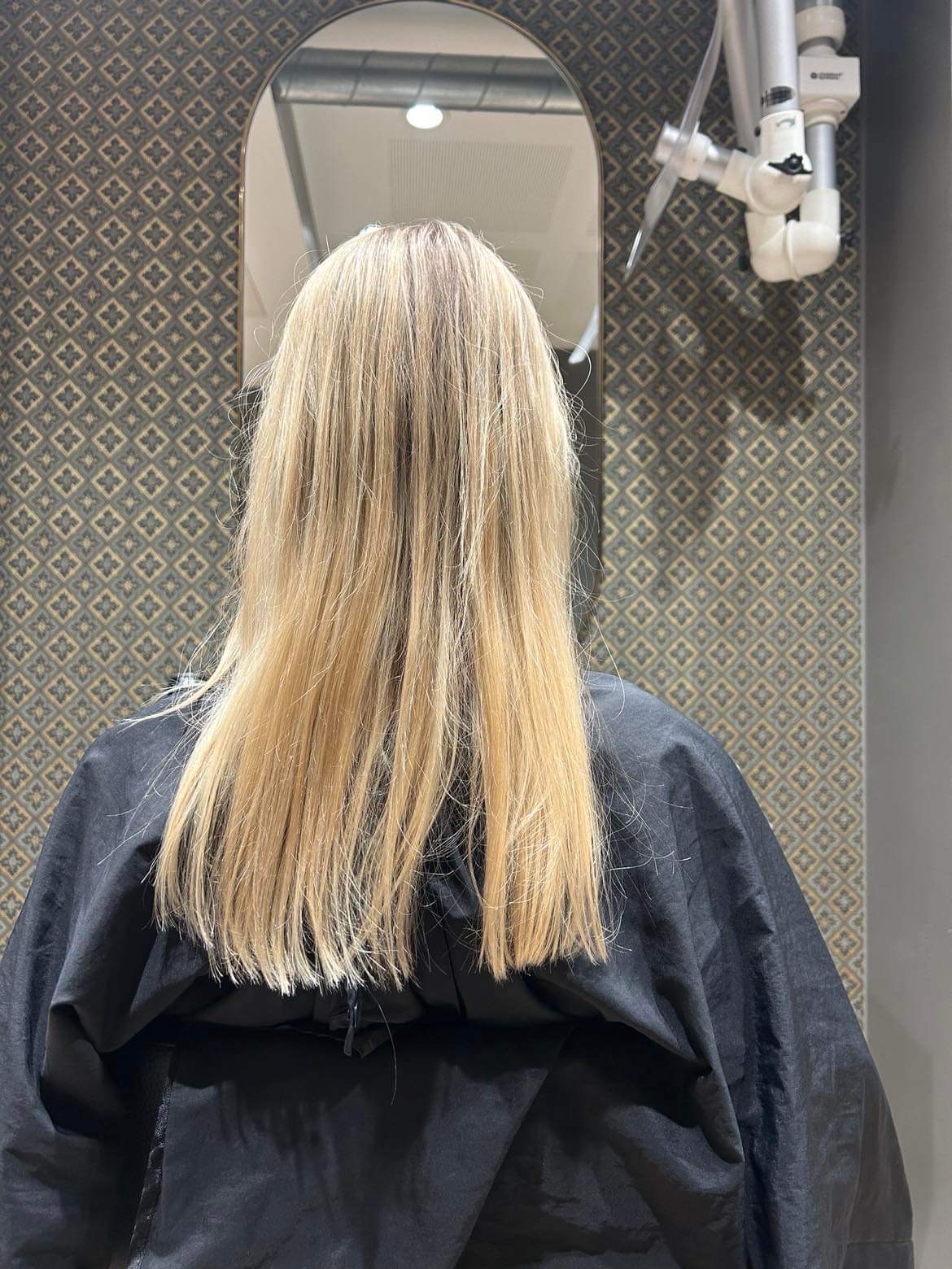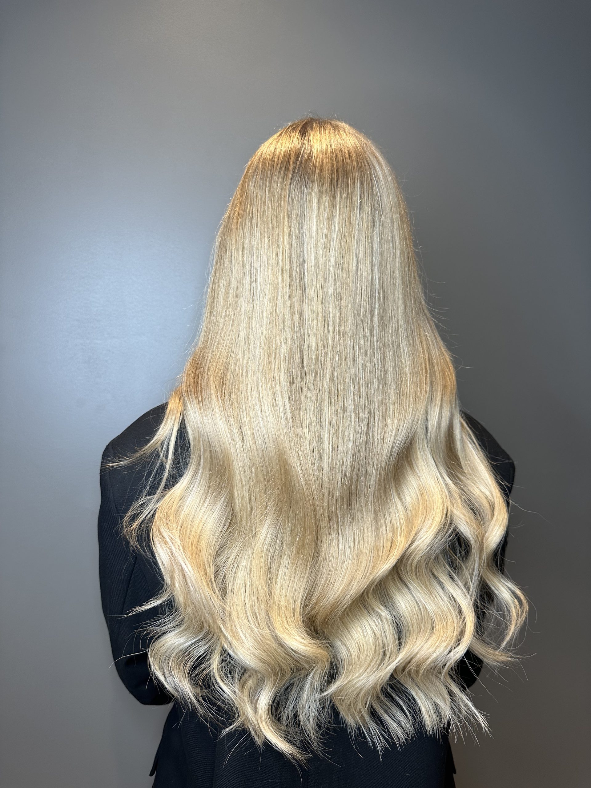 Denne løsning er til dig, som kun ønsker mere fylde end hvad du selv har i forvejen. Dvs. at ekstensionsene ikke bliver længere end dit eget hår er.